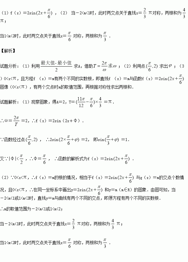 (2)设0<x<π,且方程f (x)=m有两个不同的实数根,求实数m的取值范围以及这两个根的和.