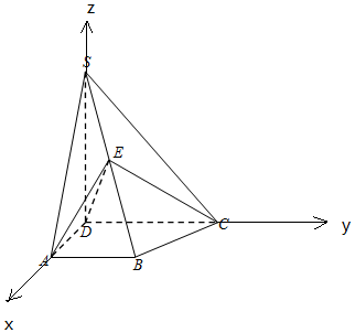 解答 解:(Ⅰ)以D为原点,DA,DC,DS为正交基底建立如图所示的空间直角坐标系D-xyz,![]()