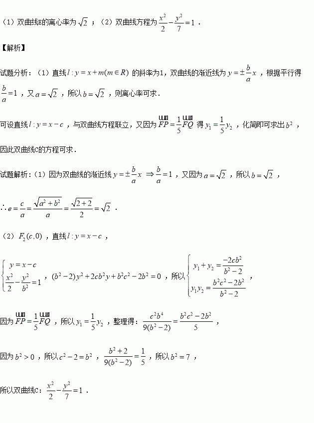 与双曲线E的其中一条渐近线平行,求双曲线E的离心率;