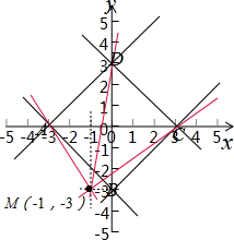 分析 画出图形,y+3=k(x+1)表示一条经过点M(-1,-3)、斜率等于k的直线,当斜率k满足大于零且小于或等于MC的斜率、或者斜率k满足小于MA的斜率时,表示的平面区域是三角形,求出MC、MA的斜率即可求得实数k的取值范围.