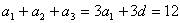 已知等差数列{an}中,a1=2,a1+a2+a3=12,