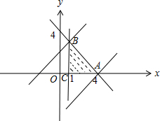 联立$\left\{\begin{array}{l}{x=1}\\{x+y=4}\end{array}\right.$,得B(1,3),
