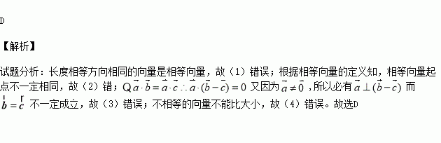 (1)两个长度相等的向量一定相等;