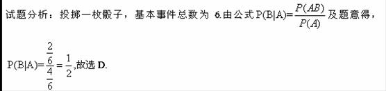 投掷一枚骰子,若事件A={点数小于5},事件B={点数大于2},则P(B|A)= ( )