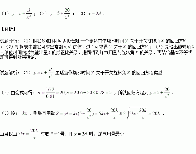 某学生为了测试煤气灶烧水如何节省煤气的问题设计了一个实验,并获得了煤气开关旋钮旋转的弧度数