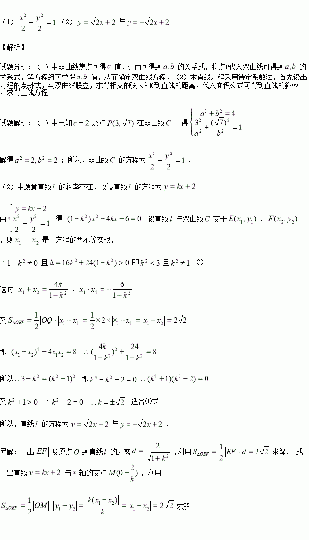 (2)记O为坐标原点,过点Q (0,2)的直线l与双曲线C相交于不同的两点E、F,若△OEF的面积为