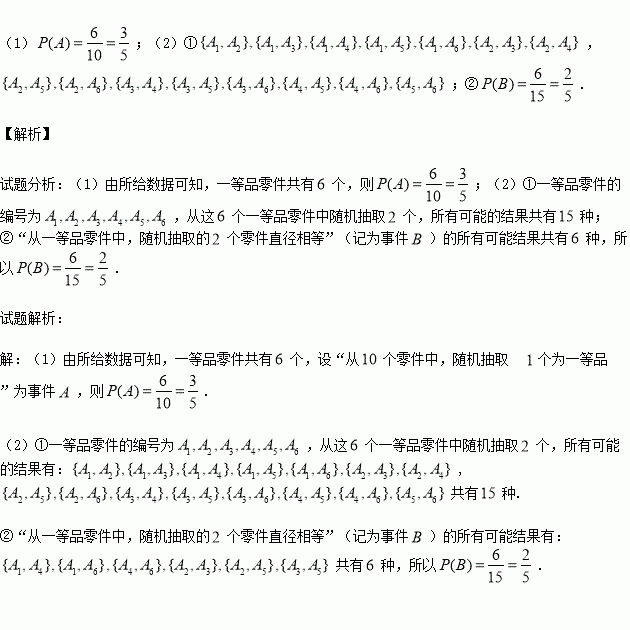 (1)从上述10个零件中,随机抽取1个,求这个零件为一等品的概率.