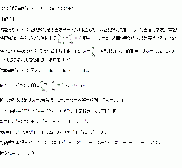 首项都是1的两个数列{an},{bn}(bn≠0,n∈N*)满足an+1bn- anbn+1=2bn+1bn.