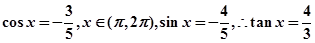 已知,那么tan x等于( )