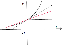 当直线y=2ax+1与函数y=ex的图象相切于点(0,1)时,2a=e0=1,即$a=\frac{1}{2}$,