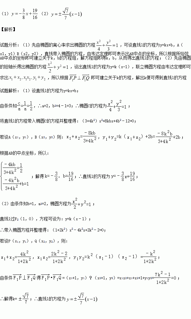 (2)若椭圆C的短轴长为2,过点F2的直线