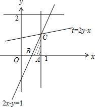 联立$\left\{\begin{array}{l}{x=1}\\{2x-y=1}\end{array}\right.$,解得C(1,1),