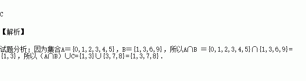 已知集合A={0,1,2,3,4,5},B={1,3,6,9},C={3,7,8},则(A∩B)∪C等于( )