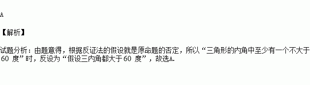 用反证法证明命题:“三角形的内角中至少有一个不大于60度”时,反设正确的是( )