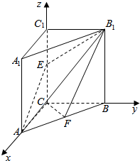 (3)先求出$\overrightarrow{C{B}_{1}}$的坐标,可设平面CFB1的法向量为$\overrightarrow{m}$,根据$\left\{\begin{array}{l}{\overrightarrow{m}•\overrightarrow{CF}=0}\\{\overrightarrow{m}•\overrightarrow{C{B}_{1}}=0}\end{array}\right.$即可得出法向量$\overrightarrow{m}$,同样的方法可求出平面AB1E的坐标.