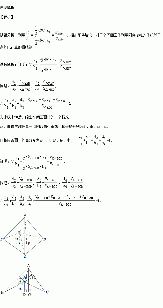=1.类比以上性质,给出空间四面体的一个猜想,并给出证明.