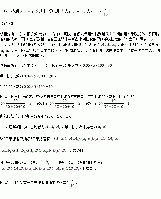 (1)若从第3,4,5组中用分层抽样的方法抽取6名志愿者参加广场的宣传活动,则应从第3,4,5组各