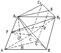 | (Ⅰ)解:过A1作A1H⊥平面ABC,垂足为H, 连结AH,并延长交BC于G,连结EG, 于是∠A1AH为A1A与底面ABC所成的角, ∵∠A1AB=∠A1AC, ∴AG为∠BAC的平分线, 又∵AB=AC, ∴AG⊥BC,且G为BC的中点, 因此,由三垂线定理,A1A⊥BC, ∵A1A∥B1B,且EG∥B1B,EG⊥BC, 于是∠AGE为二面角A-BC-E的平面角, 即∠AGE=120°, 由于四边形A1AGE为平行四边形, 得∠A1AG=60°, 所以,A1A与底面ABC所成的角为60°; (Ⅱ)证明:设EG与B1C的交点为P, 则点P为EG的中点,连结PF, 在平行四边形AGEA1中,因F为A1A的中点, 故A1E∥FP, 而FP 所以A1E∥平面B1FC。 (Ⅲ)解:连结A1C, 在△A1AC和△A1AB中, 由于AC=AB,∠A1AC=∠A1AB,A1A=A1A, 则△A1AC≌△A1AB,故A1C=A1B, 由已知得A1A=A1B=A1C=a, 又∵A1H⊥平面ABC, ∴H为△ABC的外心, 设所求球的球心为O,则O∈A1H, 且球心O与A1A中点的连线OF⊥A1A, 在Rt△A1FO中, 故所求球的半径 球的体积 |