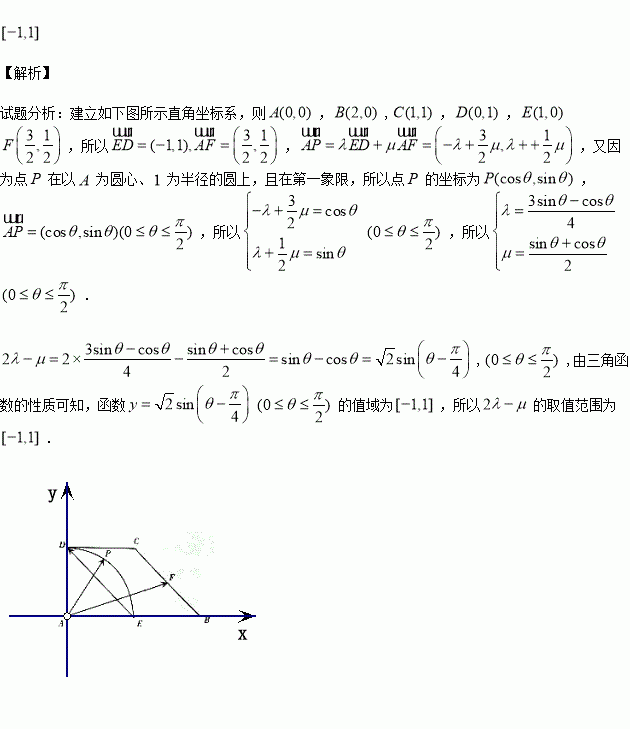 在直角梯形ABCD中,AB⊥AD,DC∥AB,AD=DC=1,AB=2,E,F分别为AB,BC的中点,点P在以A为圆心,AD为半径的圆弧