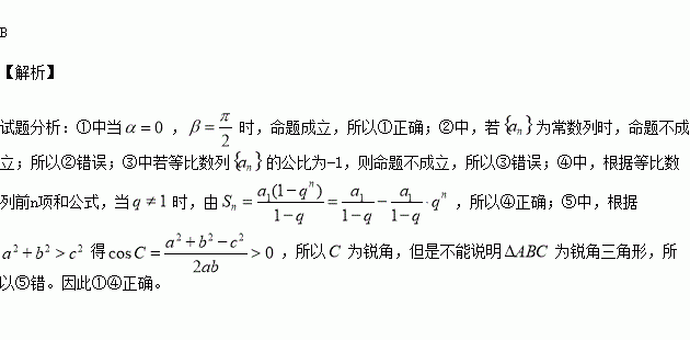 一定是锐角三角形。其中正确的命题的个数是( )