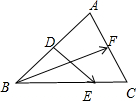 ∵$\overrightarrow{DE}=\overrightarrow{DB}+\overrightarrow{BE}$=$-\frac{1}{2}\overrightarrow{BA}+\frac{2}{3}\overrightarrow{BC}$,$\overrightarrow{BF}=\frac{1}{2}(\overrightarrow{BA}+\overrightarrow{BC})$,