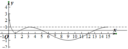 解:当3≤x≤15,时,f(x)=sin$\frac{π}{6}$x,当0<x<3时,f(x)=|log3x|