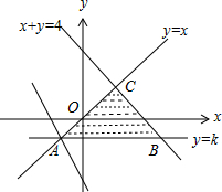 解答 解:由约束条件$\left\{\begin{array}{l}{y≤x}\\{x+y≤4}\\{y≥k}\end{array}\right.$作出可行域如图,![]()