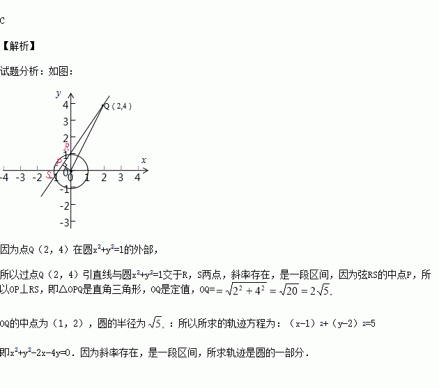 过点Q(2,4)引直线与圆x2+y2=1交于R,S两点,那么弦RS的中点P的轨迹为( )