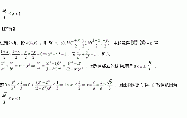 ,设A,B为椭圆上关于原点对称的两点,AF的中点为M,BF的中点为N,原点O在以线段MN为直径的圆上.若直线AB的斜率k满足
