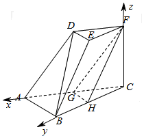 (Ⅱ)建立以C为坐标原,CA,CB,CF分别为x,y,z轴的空间直角坐标系如图:
