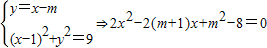 将(2)代入(1)整理得x2-(m+1)x+m2-m-8=0