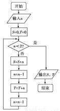 阅读下边的程序框图,若输入的n是100,则输出的变量S和T的值依次是( )