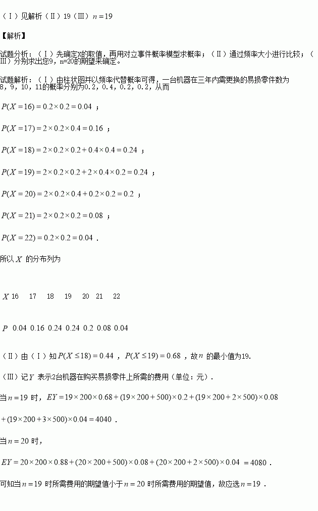 ij¹«Ë¾¼Æ»®¹ºÂò2̨»úÆ÷£¬¸ÃÖÖ»úÆ÷ʹÓÃÈýÄêºó¼´±»ÌÔÌ.»úÆ÷ÓÐÒ»Ò×ËðÁã¼þ£¬ÔÚ¹º½ø»úÆ÷ʱ£¬¿ÉÒÔ¶îÍ⹺ÂòÕâÖÖÁã¼þ×÷Ϊ±¸¼þ£¬Ã¿¸ö200Ôª.ÔÚ»úÆ÷ʹÓÃÆÚ¼ä£¬Èç¹û±¸¼þ²»×ãÔÙ¹ºÂò£¬Ôòÿ¸ö500Ôª.ÏÖÐè¾ö²ßÔÚ¹ºÂò»úÆ÷ʱӦͬʱ¹ºÂò¼¸¸öÒ×ËðÁã¼þ£¬Îª´ËËѼ¯²¢ÕûÀíÁË100̨ÕâÖÖ»úÆ÷ÔÚÈýÄêʹÓÃÆÚÄÚ¸ü»»µÄÒ×ËðÁã¼þÊý£¬µÃÏÂÃæÖù״ͼ£º