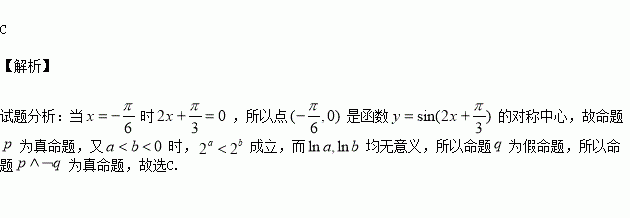 ,0)对称;命题q:若2a <2b ,则lga<lgb。则下列命题中正确的是( )