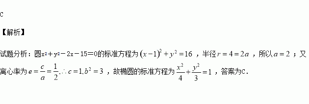 已知焦点在x轴上的椭圆的离心率为,它的长轴长等于圆x2+y2-2x-15=0的半径,则椭圆的标准方程是