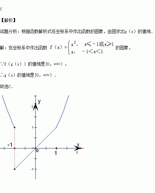 ,g(x)是二次函数,若f[g(x)]的值域是[0,+∞),则g(x)的值域是( )