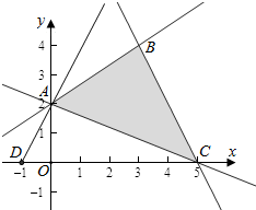 由$\left\{\begin{array}{l}{2x+5y=10}\\{2x-3y=-6}\end{array}\right.$,得$\left\{\begin{array}{l}{x=0}\\{y=2}\end{array}\right.$,即A(0,2),