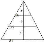 【答案】分析:设出棱台扩展为棱锥的高分别a,b,c如图,利用几何体的面积比就是相似比的平方,即可求出结果.