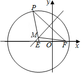 解:(Ⅰ)由垂直平分线的性质可得|MP|=|MF|,如图:则|ME|+|MF|=|ME|+|MP|=|EP|=2$\sqrt{3}$>2$\sqrt{2}$=|EF|,