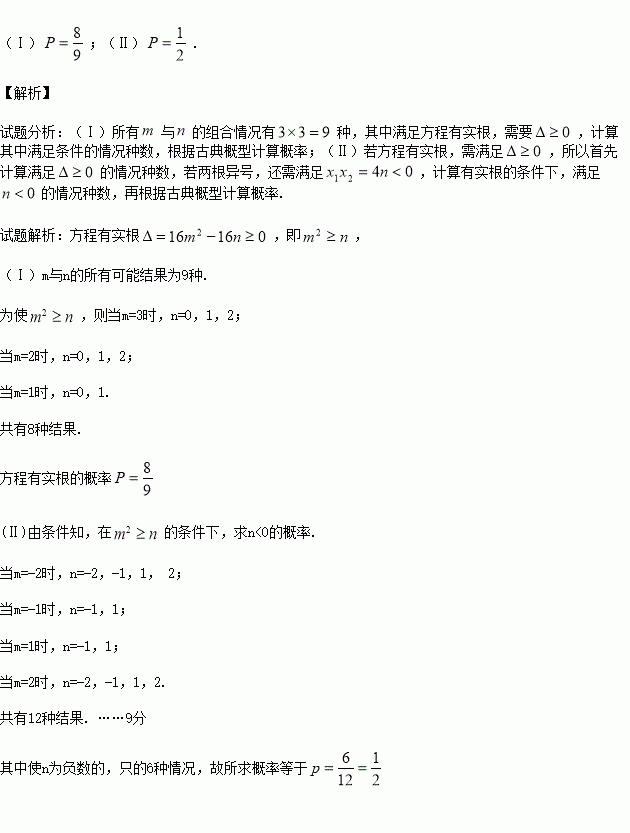 (Ⅰ)若m∈{1,2,3},n∈{0,1,2},求方程有实根的概率;