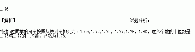某次体检,6位同学的身高(单位:米)分别为1.72,1.78,1.75,1.80,1.69,1.77则这组数据的中位数是_________(米).