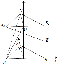 分析 取AB的中点O为原点,分别以OB,OC,OD为正方向建立空间直角坐标系,由侧面BB1A1是正方形,设其边长为1,则可得:A,A1,D,E的坐标,可求$\overrightarrow{AD}$,$\overrightarrow{{A}_{1}E}$的坐标,由$\overrightarrow{AD}•\overrightarrow{{A}_{1}E}$=$\frac{1}{2}+0-\frac{1}{2}$=0,可得:AD⊥A1E,又C1D⊥A1E,即可证明A1E⊥平面AC1D.