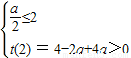 解答:解:函数y=log2(x2-ax+4a)在[2,+∞)是增函数,令t(x)=x2-2ax+3a,由题意知: