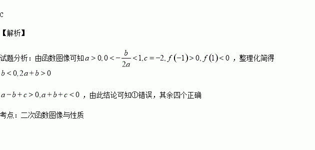 二次函数y=ax2+bx+c的图象如图2所示,则下列结论①abc<0,②b2-4ac>0,③2a+b>0,④a+b+c<0,⑤ x=0为方程ax2+bx+c=-2的一个解,其中正确的有 ( )