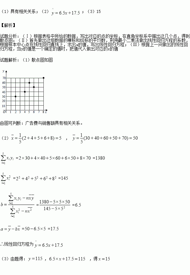 (1)画出散点图,并判断广告费与销售额是否具有相关关系;