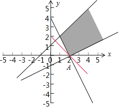 联立$\left\{\begin{array}{l}{2x+y=4}\\{x-2y=2}\end{array}\right.$,解得A(2,0),