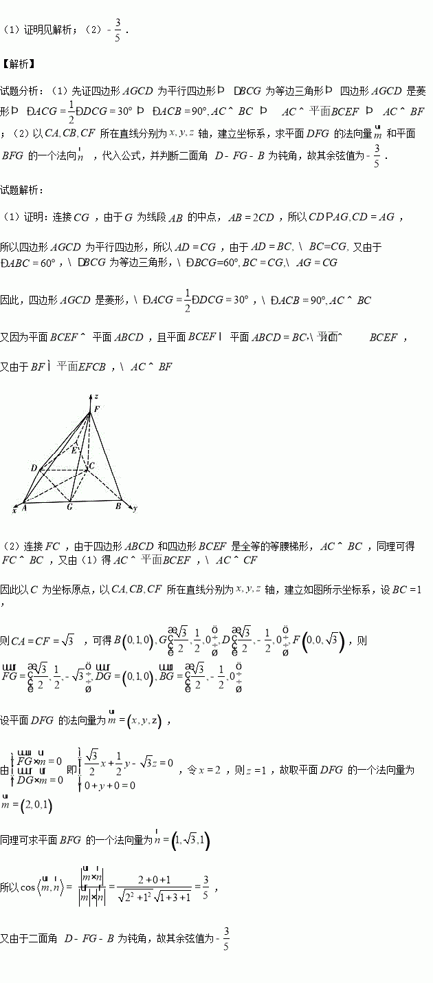 如图所示几何体中,四边形和四边形是全等的等腰梯形,且平面平面,, 为线段的中点.