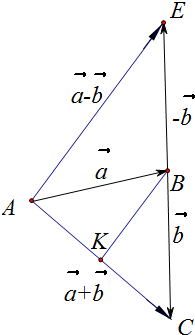 证明:如图以A点为起点,作$\overrightarrow{AB}=\overrightarrow{a}$,$\overrightarrow{BC}=\overrightarrow{b}$,$\overrightarrow{BE}=-\overrightarrow{b}$,