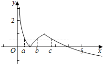 分析 画出函数f(x)的图象,设a<b<c,可得0<a<1<b<2<c<4,再由条件去掉绝对值,运用对数的运算性质,可得ab=1,bc=4,log2a=log2c-2,即有ab+bc+ac=ac+5,求得log2(ac)的范围,即可得到所求范围.