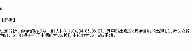 和一个最低分后,所剩数据的众数和中位数分别为( )
